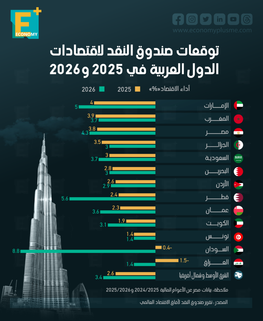 "صندوق النقد" يرفع توقعاته لنمو اقتصاد مصر للعامين الماليين الحالي والمقبل.. الكويت تدرس تحويل ودائع بـ4 مليارات دولار في مصر إلى استثمارات مباشرة
